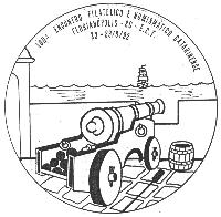 Este carimbo retrata detalhes da bateria de canhões e guarita, além de outros elementos temáticos, do lado norte do Forte de São José, localizado no extremo oeste da Praia de Jurerê, na chamada Ponta Grossa.